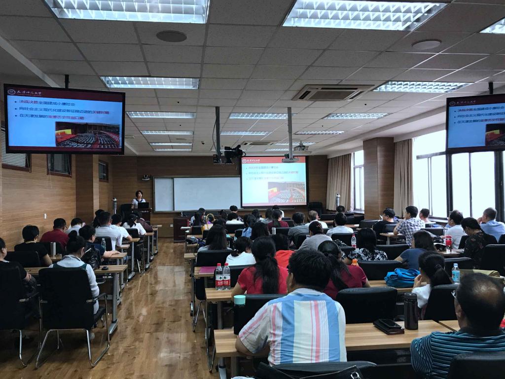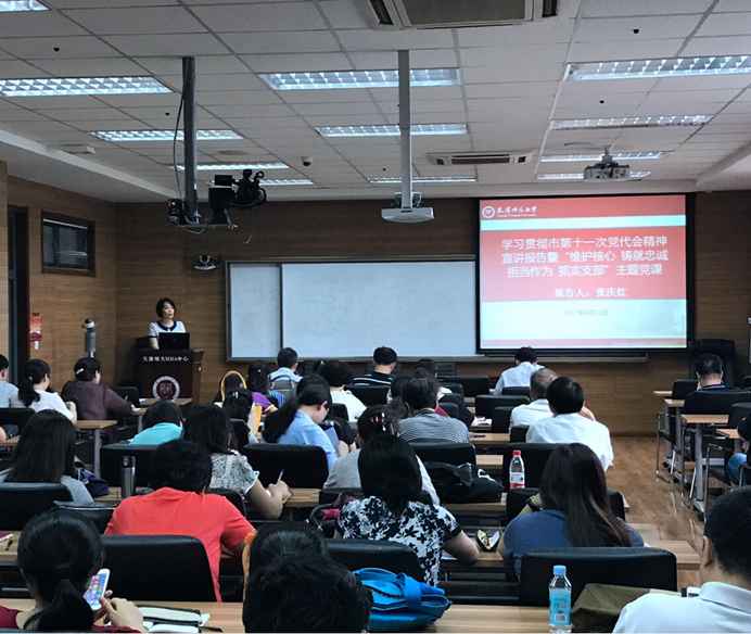 为深入学习贯彻天津市第十一次党代会精神,推动“两学一做”学习教育常态化制度化深入开展,按照学校党委统一部署, 6月22日下午14:00,院党委书记张庆红在兴文楼A219为全体党员、教职工,作学习贯彻天津市第十一次党代会精神宣讲报告暨“维护核心 铸就忠诚 担当作为 抓实支部”主题党课。