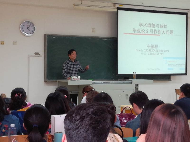 为进一步加强中韩合作硕士研究生硕士论文学术道德与诚信工作,我院于2017年4月16日下午15:50至18点,在劝学楼C306教室,由韦福祥院长为2016级在校学生举办了题为“学术道德与诚信及毕业论文写作相关问题”的专题讲座。韦福祥院长详细解读了教育部《学位论文作假行为处理办法》,包括学位论文造假的认定及对造假学生、指导教师等相关人员的处理规定。同时,韦院长还结合15级预答辩出现的论文写作问题,对研究生论文从选题、文献整理、数据采集、研究设计一直到学术论文规范问题进行了详细的说明。