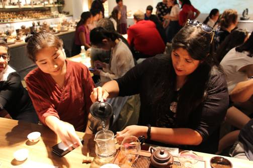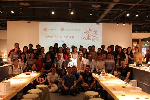 在中午稍作休整后,美国UTSA夏令营同学们及语伴来到了位于河东区的草木人茶文化中心,一起品鉴茶饮,欣赏茶艺,感受茶文化的魅力。讲解员带领大家参观了茶文化中心,向大家详细介绍了茶的分类,茶具的分类并且为大家演示了不同茶的不同泡法,美方同学之后也亲自体验了泡茶的过程,感受其中的乐趣与内涵。通过茶艺大师的现场讲解和茶艺师的精彩演绎,中美双方团员都切身感受到了中国传统文化的博大精深。